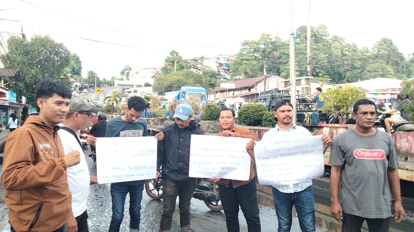 Pantauan timesmaluku.com di lokasi, warga Batu Merah membentangkan pohon pisang di tengah jalan sebagai bentuk protes. Aksi ini menyebabkan arus lalu lintas kendaraan roda dua dan roda empat mengalami kemacetan cukup parah, terutama pada jam sibuk sore hari.