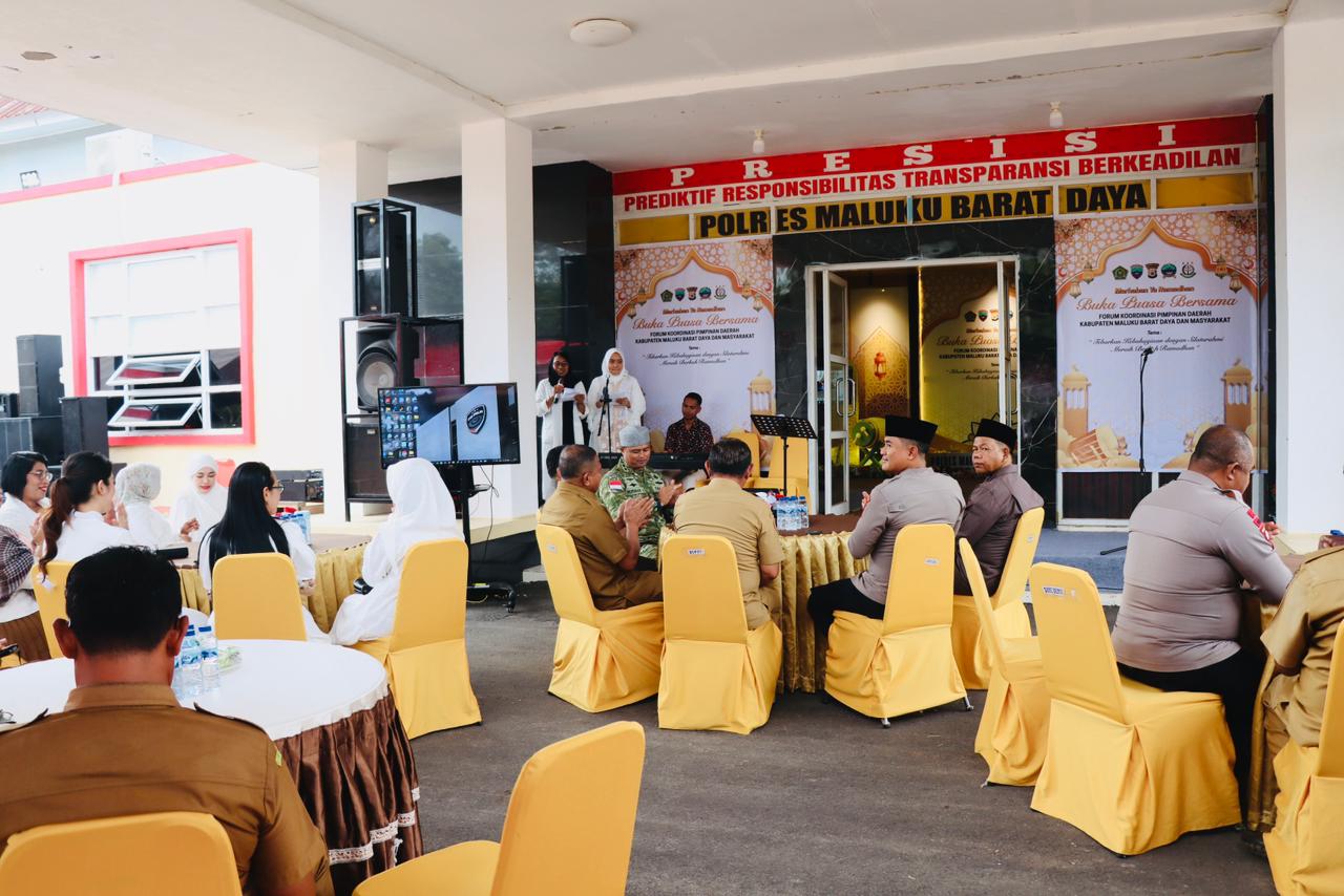 Buka puasa bersama Polres MBD dan Pemkab MBD, dihadiri Bupati, Wakil Bupati, dan Sekda.