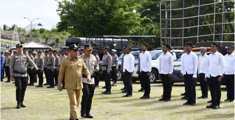 Dalam kesempatan tersebut, Bupati Noach membacakan amanat Listyo Sigit Prabowo selaku Kapolri di hadapan unsur Forkopimda, personel TNI–Polri, instansi terkait, serta peserta apel.