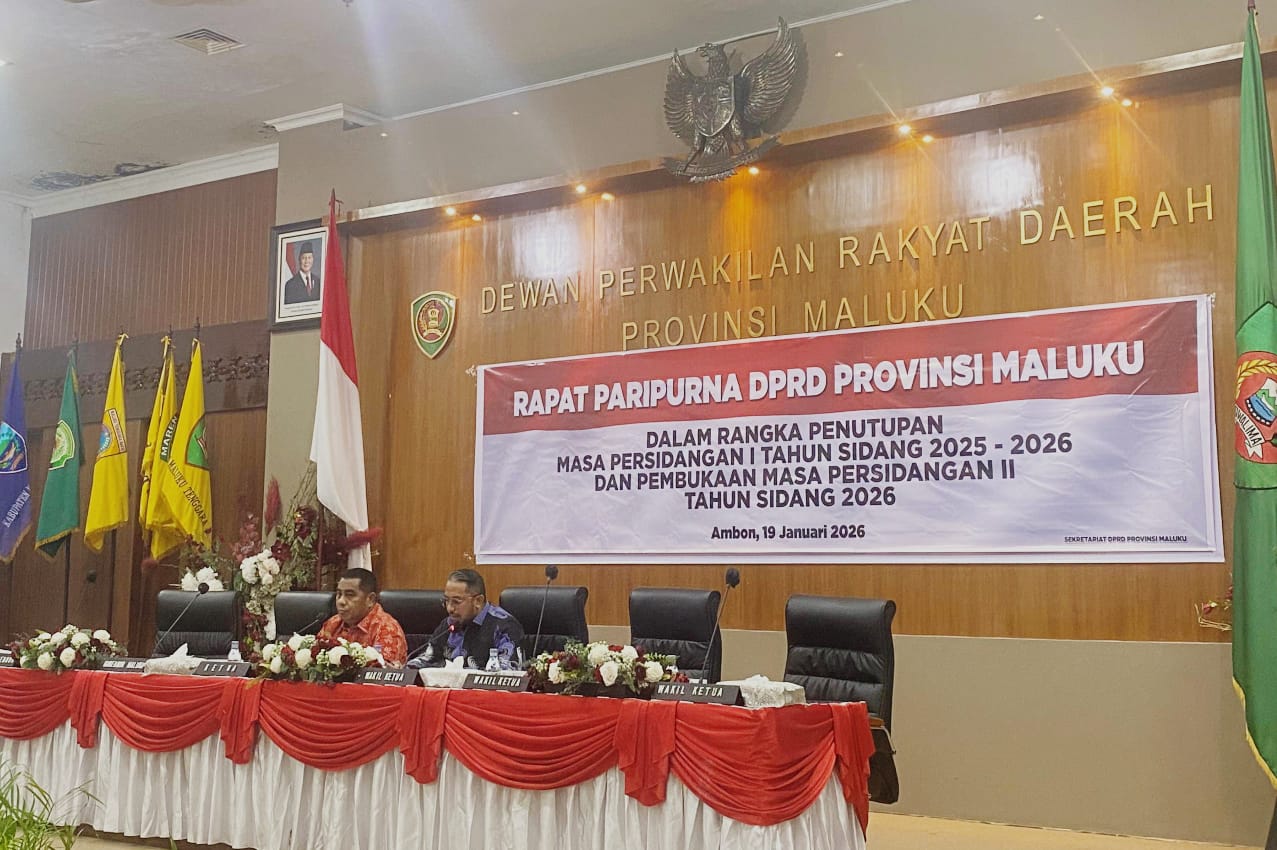 AMBON, TM — Dewan Perwakilan Rakyat Daerah (DPRD) Provinsi Maluku memaparkan agenda kerja, kegiatan kelembagaan, serta capaian kinerja selama masa persidangan satu tahun 2025–2026. Pemaparan tersebut disampaikan dalam rapat yang digelar di Kantor DPRD Provinsi Maluku, Senin (19/1/2026).