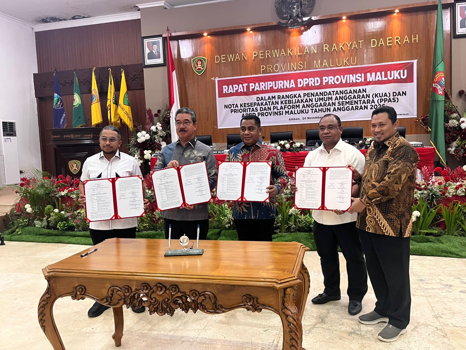 Ambon, TM — DPRD Provinsi Maluku resmi menyetujui Kebijakan Umum Anggaran dan Prioritas Plafon Anggaran Sementara (KUA-PPAS) APBD Tahun Anggaran 2026.