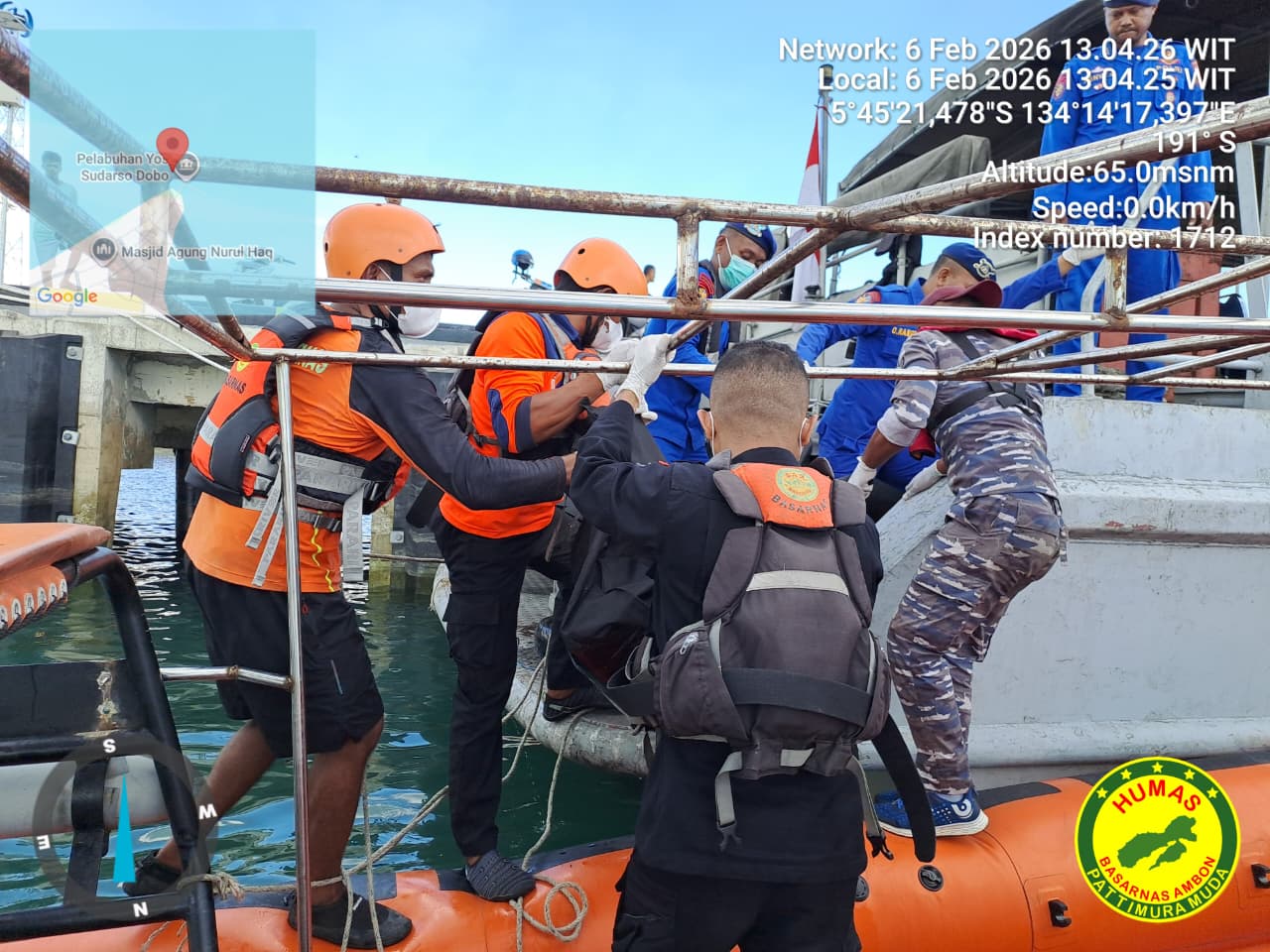 Pada pukul 11.45 WIT, SRU 1 menggunakan RIB USS Dobo berhasil tiba di Perairan Desa Jerwatu dan mengevakuasi korban ketiga yang sebelumnya ditemukan oleh masyarakat pada Kamis (5/2/2026).