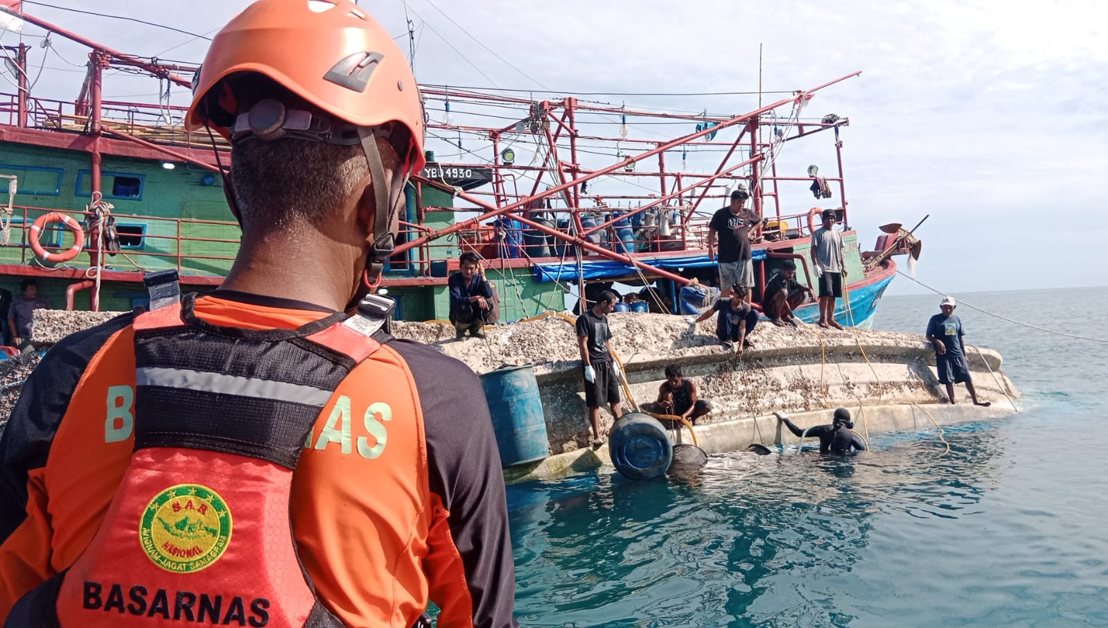 Selanjutnya, pada pukul 12.25 WIT, Tim SAR Gabungan menerima laporan dari awak kapal terkait satu korban yang terperangkap di dalam badan kapal dalam kondisi meninggal dunia.