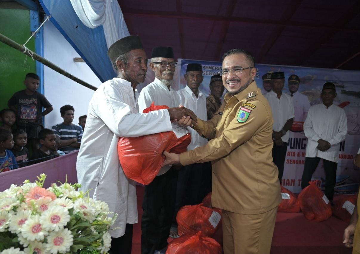 Dalam kesempatan itu, bupati menyerahkan bantuan 10 paket alat tangkap ikan tradisional kepada para nelayan dari kedua desa sebagai bentuk dukungan awal terhadap implementasi program.