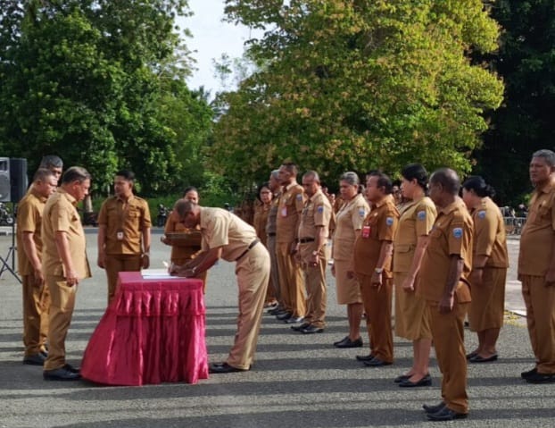 Dalam sambutannya, Bupati Noach meminta seluruh ASN bekerja dengan penuh tanggung jawab serta ketulusan dalam membantu pimpinan OPD menjalankan program kerja perangkat daerah masing-masing.