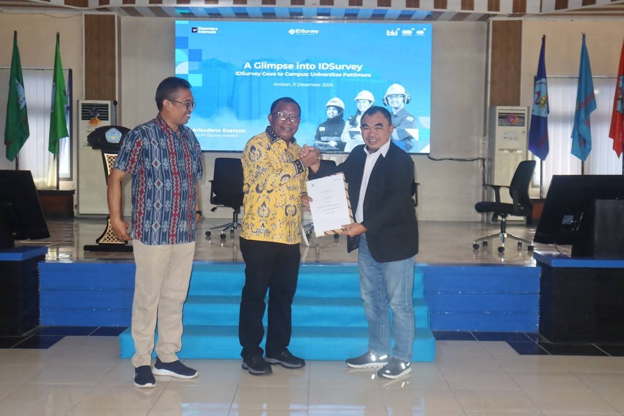 AMBON, TM — ID Survey Group menggandeng Universitas Pattimura (Unpatti) menggelar kegiatan IDSurvey Goes to Campus di Aula Rektorat Unpatti, Kamis (11/12/2025).