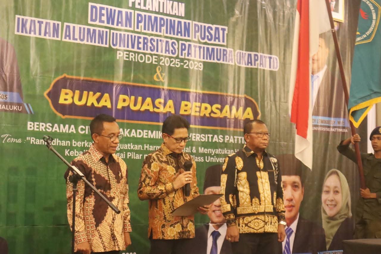 Hal tersebut disampaikan dalam pelantikan dan buka puasa bersama Dewan Pimpinan Pusat IKAPATTI periode 2025–2029 yang digelar di Swiss-Belhotel Ambon, Jumat (13/3/2026).
