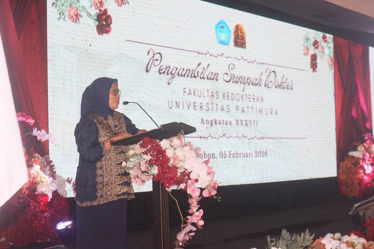 Prosesi tersebut digelar di Gedung Islamic Center Ambon, Kamis (5/2/2026). Wakil Rektor Bidang Kemahasiswaan, Hubungan Masyarakat, dan Alumni Unpatti, Nur Aida Kubangun, mengatakan bahwa pengambilan sumpah dokter bukan sekadar prosesi seremonial, melainkan pernyataan komitmen moral, etis, dan tanggung jawab profesional yang melekat sepanjang perjalanan pengabdian seorang dokter.