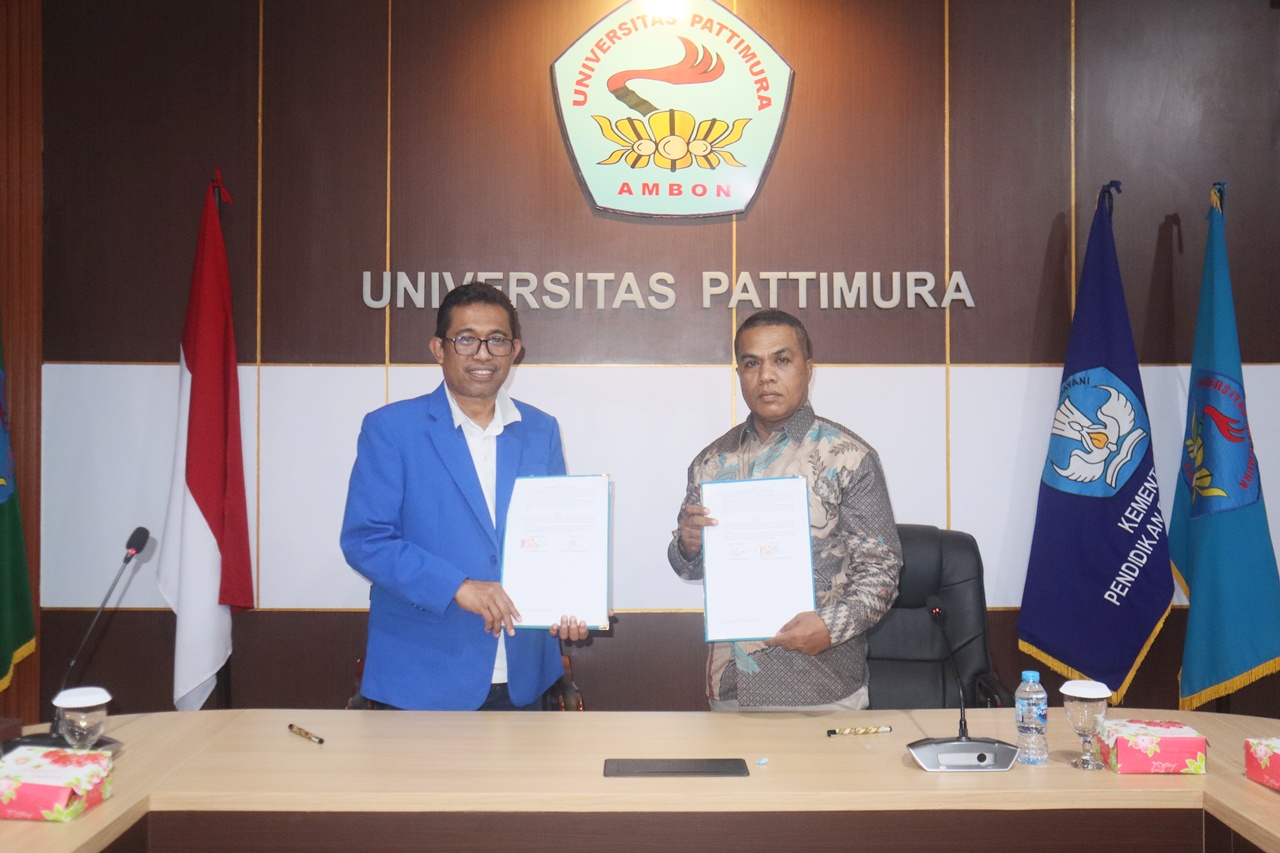 Dokumen ditandatangani oleh Wakil Rektor Bidang Perencanaan, Kerja Sama, dan Sistem Informasi Unpatti, Dr. Ruslan H. S. Tawari, S.Pi., M.Si, bersama Dr. A. Siahaya, S.E., M.Si.